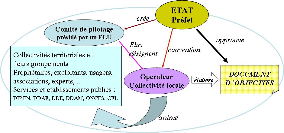 Pour arriver aux résultats attendus par les deux directives européennes, la France a mis en place toute une démarche administrative. Voyons dans de larges étapes le fonctionnement de celle-ci :